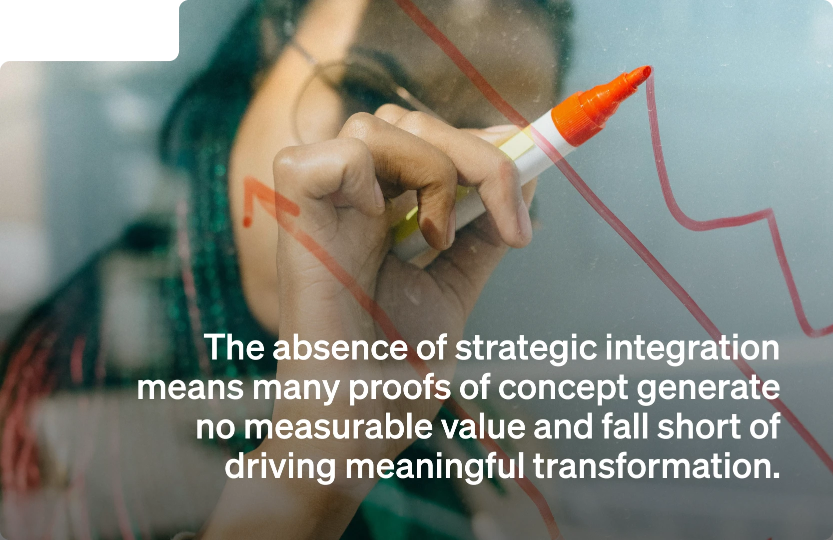 - Proof-of-Concept Trap: Pilots often run in isolation without the required infrastructure, integration, and maintenance. Moving to daily business fails.